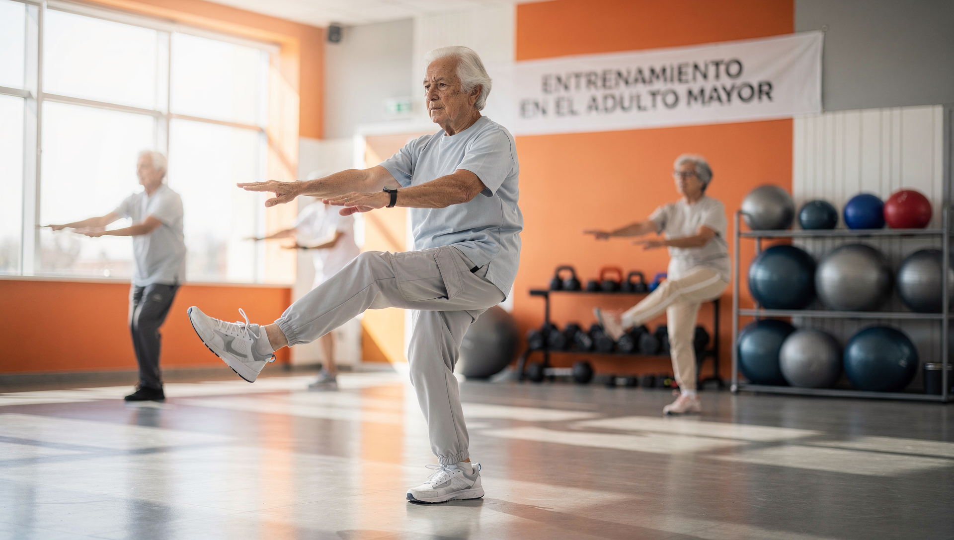 • Entrevista inicial y detección de factores de riesgo. • Programas multicomponentes: fuerza, aeróbico, equilibrio, movilidad y flexibilidad. • Dosificación del ejercicio (FITT-VP) y control de intensidad (RPE, %FC, velocidad.)