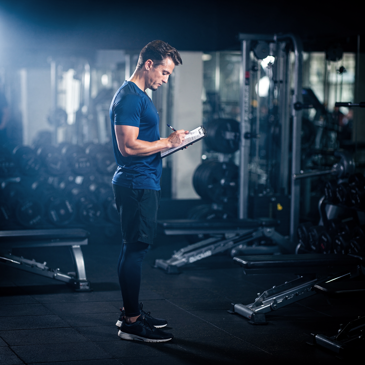 • Identificación de objetivo principal (fuerza, hipertrofia, recomposición). • Evaluación técnica y nivel de experiencia. • Selección de ejercicios según capacidad real.